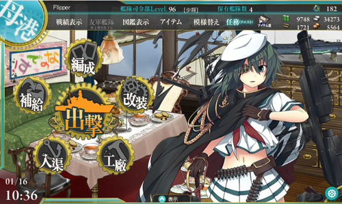 あけましておめでとうございます! 今年もよろしくお願いたします! ![]() 新年1枚目は夕立改2ちゃん。年賀絵でも何でもないですが、その点はご勘弁を・・・。 この子、見た目も可愛いですが、性格も子犬のような可愛さで、ついつい贔屓しちゃいます。 「ほめて、ほめて〜」と言われるたびに、「うん、うん。よくやったぞ、夕立」と思わず口に出して褒めてしまう溺愛ぶり<アブナイ 駆逐艦はどの子も可愛いので、みんな平等に愛そうと心がけてはいますが(クソ提督呼ばわりする子もいますがねw)、この子が一番のお気に入り。レベルも駆逐艦の中では一人だけ飛び抜けて上がってます。 可愛いだけでなく、夜戦ではむちゃくちゃ頼もしいですしね。去年の秋イベントでも夜戦で大活躍してくれました。 ケッコンカッコカリはむっちゃんにしようと心に決めてますが、この子も捨てがたいんだよなぁ・・・とりあえず99にしよう。 昨年末のコミケ! 当サークルを訪れてくださった方、本やマグカップを買ってくださった方、本当にありがとうございました! おかげさまでマグカップと既刊についてはすべて完売しました。 マグカップはさすがに今回はそんなに早くは売れないだろうと思ってたんですが、あっけなく完売してしまいました・・・。 新刊には見向きもせずに、マグカップだけ買っていく人もいて、マグカップというグッズの根強い人気を再認識しました。 こちらとしてはオマケ的に作ってるものなので、ちょっと意外な感じではあるのですが、何にせよ欲しがってくださる方がそれだけいらっしゃるというのはありがたいことだと思いました。 買えなかった方、すみませんでした。これに懲りずにまたの機会によろしくお願いできればと・・・。 新刊については少し残ってますので、また次回のイベントに持っていこうと思います。 今後のイベント参加予定については、とりあえず夏コミは申込決定。他のイベントは未定です。 個人的には艦これのイベントに出てみたいなぁとは思ったりしてますが、まだ具体的なことは何も決めていません。 「今、何が描きたいのか?」というと艦これなので、艦これ本を作ってみたいとは思うのですが、何せ艦これやってるサークル多いですしねぇ。ウチで作ってもなぁって思うところもあったりして、どうしたものやら・・・。 もう少し考えてみようと思います。 あ、そうそう、前回から言ってる総集編。結局今回も作れませんでした(汗 我ながらダメダメですねぇ。でも、さすがにそろそろ形にしたいなぁと思ってます。 作るなら単なる寄せ集めでは面白くないので、出来れば気になるところは描き直して、描き下しも入れて・・・と、納得のいく形で出したいと考えてます。ちゃんと計画的に進めれば、次の夏コミに間に合わせることは十分可能だと思うので、ちょっと腰を据えてやってみたいです。 というわけで、とりあえず何のイベントかはともかく、次のイベントでまた皆様とお会いできるのを楽しみにしております。今後ともよろしくお願いします! 艦これ 冬のプチイベントを開始後すぐにクリアして、その後は持ってないレア艦求めてひたすらE2、E3を回ってました。 長門、夕雲、長波、瑞鳳と割と順調にゲットできたんですが、残りの瑞鶴、鈴谷、三隈がなかなか出なくて、こりゃもう無理かなって思い始めた矢先に三隈が出ました。 ![]() 瑞鶴と鈴谷はまだゲットできてませんけど、瑞鶴・鈴谷はイベント終わっても建造やドロップで拾えそうな気がするので、三隈が出てくれたことでワタシ的にはイベントはもはや終わったような気分です。くまりんこ可愛いよ、くまりんこ! ありがとう、よいイベントでした!<まだ終わってないw |