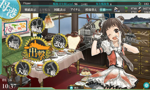 ![]() 前回ラフを上げたはっちゃん完成版です。 彼女、出撃時に「戦うのは好きじゃない」みたいなことを言って、戦意を削いでくれちゃうのですけど、本が好きな彼女のことですから、戦いに出るよりは、出来ればこんな感じで陸でのんびり読書をしていたいのだろうなぁと妄想。 ![]() キソーさんは無事に65に到達し、重雷となりました。北上・大井の二人には雷装値では劣るものの、それでも十分すぎる威力です。まったくもって頼もしい限り。改2にしてから他艦のレベル上げ用随伴艦として出てもらってたら、あっけなく70の大台に乗ってました。 ![]() 先日改2が来た那珂ちゃんも、当日のうちに改2にしました。那珂ちゃんは事前に60まで上げてたので、即改造できました。なにげにウチの艦隊の軽巡の中では最高レベルになってますw ただ、軽巡は普段はあまり出番がないので、改2にして、近代化改修をMAXまで上げた後は、装備を外して寝かせてます。イベントとかで軽巡が役立つ面とかでも来ない限りは、あまり使う機会はないかなぁ。。。 あとは当面の目標は大型建造で大鳳・大和を出すこと、なんですけど、資源が貯まらないといかんともしがたいので、今は演習と最低限のデイリー任務だけこなして、余計な出撃とかはせずに資源を貯める毎日です。 ま、今はどうしてもレベル上げたい!とか、クリアしないといけないステージがある!というわけではないので、資源貯めるだけってのでも、さほどストレスではないのですけど、ゲームとして面白いかと言われるとちょっと・・・かなぁ。