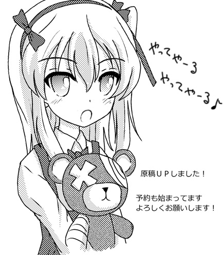 冬コミも本日にて終了。参加された皆様お疲れ様でした! 今回ウチのサークルは2日目参加だったんですが、今までは夏コミ・冬コミともに3日目参加が多かったので、コミケから帰ってきて翌日がまだ年明けてないってのはちょっと変な感じですw それはさておき、冬コミにてサークル「MottoCompany」を訪れてくださった方々、本当にありがとうございました。 今回は初めてのガルパンでの参加ということもあり、始まるまではちょっと不安もあったんですが、結果としては新刊・既刊ともに完売という望外の結果となりました。ホントに感謝感激です。 ていうかですね、今回は11時前に新刊・既刊全部なくなってしまったんですよ。 開始して1時間経たずに机上から何も無くなるなんてあり得ないです。いったい何が起こったのかと思いましたw 持ち込んだ冊数とか違うので一概には言えませんけど、時間だけで見れば、今回は間違いなく自分的同人活動史上最速の完売です。いやホントびっくりです。 ウチのサークルの本があんなに早く無くなるなんて誰も思ってなかったと思うので、いつもと同じような感じで来てくださった方は「は?完売?なにそれ」と思われたことでしょう。わざわざスペースまで来てくださったのに、買えなかった方にはホント申し訳ないです。ごめんなさい。 委託先のとらのあなさんにまだ残部あるようなので、今回買えなくて興味を持っていただけてる方は、ぜひご検討いただければと思います。ヨロシクお願いします。 とらさんの販売ページはココ! ⇒追記)31日の夜で通販在庫が無くなったようです。店頭にはまだ少しあるみたいなので、機会ありましたらそちらでぜひ。 で、冬コミお疲れ様&完売御礼用の愛里寿ちゃん描きました。色塗りまではちょっと時間なくて無理でした。 その代わりにというわけではないですけど、スカートちょい短めw ![]() さて、次回のイベント参加予定ですが、とりあえず5月の「ぱんっあ☆ふぉー!11」と「夏コミ」を申し込むつもりです。 次もガルパンで本を作りたいと思ってますが、ビビストのリンネちゃん本を作りたいという欲求がかなりくすぶっているので(脳内にすでにネームまで出来てるw)、もしかしたらリリマジも申し込むかもしれません。 なんにしても来年はもっと同人活動頑張って、いっぱい本を作りたいですね。 というわけで、皆さま、今年はいろいろとお世話になりました。来年もまたよろしくお願いします! ではよいお年を!