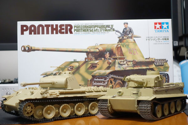 明日はコミ1、そしてその次の日曜はいよいよぱんっあ11ですね。かねてより告知させていただいている通り、サークル「MottoCompany」でぱんっあ11に参加します。 冬コミから半年ぶりのイベント参加、しかも初のぱんっあ参戦、ワクワクドキドキです。 今は新刊の作業も終わって、あと残ってる作業は当日のPOPや値札作ったりするくらいかな。それもこの土日のうちにやってしまおうと思います。 時間が出来たので、夏に出す次の本をあれこれ妄想してます。 実を言うと次の本では戦車を出したいと目論んでます。 もっともいきなり戦車を描くのはスキル的に無理があるので、まずはちょびっと登場させる程度にしようかと思ってます(弱気)。でもまぁちょびっとにしたってやはり難しいです。そもそもどこがどうなってるか、それを知るのに、いかにネットの写真をかき集めたところで無理があります。そこで!手っ取り早く360度どこからでも見れる究極の資料として、プラモデルを作ることにしました。 で、作ったのがこれ。 ![]() タミヤ1/35ミリタリーミニチュアシリーズ(略してMMシリーズ)のパンターです。MMシリーズには、実はパンターが何種類かあります。その中でもこれは一番お安いモデルです(アマゾンで1554円なり) お安いのにはワケがあって、このモデルは古いモーターライズドのモデルを流用したものなんですね。だもんで、もっと新しいほかのモデルと比べると造形が甘く、全体のバランスや細部のディテールも実車とは異なるらしいです。でもまぁ、漫画の資料として使うならこれで十分でしょう。それに安い分パーツ数が少なく、さくっと半日で組めちゃうお手軽さも魅力です。 ![]() まほ姉ちゃんの戦車ティーガーとの2ショット。 パンターはまだ塗装してないのでプラスチッキーさ満点です。資料として使うだけなら塗装しなくてもいいかなぁとも思いましたけど、せっかく作ったのだから一応塗ろうと思います。塗るとしてもティーガー同様のダークイエロー単色迷彩ですけども。 wikiによるとパンターは全長8.66m、全幅3.27m、全高2.85m。ティーガーは全長8.45m、全幅3.705m、全高3m。パンターは車重が軽いので中戦車(といっても45tくらい)、ティーガーは57tで重戦車に分類されてますけど、全長はパンターの方が長いんですね。中戦車と言いつつも堂々たる体躯です。 ちなみに今回なんでパンター作ったのかって言うと、劇場版で愛里寿の練習試合の相手がパンターだったからです。 愛里寿自身が乗ってたのはシャーマンのようでしたが、シャーマンはすでに昨年プラモデル作ってるので、今回はパンターにしました(まぁ、要するに練習試合の風景を描こうとしてるわけですねw)