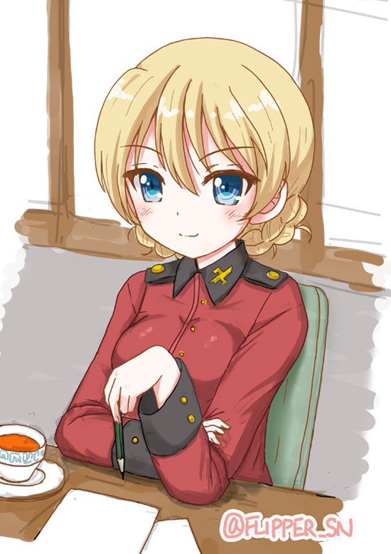 昨日から喉が痛くてまいってます。風邪なのか何なのか分からないけど、とにかく喉が焼けるように痛いです。今日は少しマシになったかなぁ。 それはさておき、一昨日、生まれて初めてワンドロに参加してみました。ワンドロってのはアレです、1時間で絵を仕上げてUPするってやつ。参加したのはTwitterのガルパンのやつです。 描き始めて30分すぎるくらいまでは調子よくて、これなら余裕ありそうだなって思ってました。が、「ちょっと手直ししよう」な〜んて思ったのが運の尽き。ちょびちょび直してたら、時間が過ぎるのがどんどん加速し始めて、色塗るための時間がどんどん削られて・・・。結局、色塗りは途中で諦めざるを得ませんでした。 ちなみに私が選んだお題はアンチョビで、描いたのがこれ。 ![]() アンチョビ大好きなのだけど、実はあまり描いたことがなかったんですよね。これで2回目かな(これ描いた後に、前に描いたアンチョビ見たら、ほとんど全く同じ構図で焦りました。。。) まぁそもそもアンチョビに限らず愛里寿以外はほとんど描いてないんですけどね。 それにしてもワンドロ面白いです。前にも書きましたけど、私は何か描く際に「描くならちゃんしたもの描かなきゃ!」って身構えてしまう傾向があって、そのせいで逆に描くことに腰が引けてしまう(時間かけられないなら描けない、とか思っちゃう)ことがよくありました。最近はラフを描き散らすようになったので、そういうので「結局何も描かない」ということも減ってきたんですけど、ワンドロってそんなの無視で、とにかく描くしかないって感じで、なんかその「勢い感」というか「ノリ」というか、そういうのが楽しいです(もともとお祭り的なの好き) 普段、自分では描こうと思わないようなキャラを描くってのもよいですね。やはりいろいろ描かないと。 良い経験になるし、何より楽しいので、これからも出来るだけ参加していきたいなーと思いました。 あと、びっくりしたのが、ワンドロでTwitterのフォロワーが20人くらい増えました。今までなんか描いてUPしてもそんなに増えたことなかったです。初参加なのにRTやいいねもドドっと頂けて、何と言うか、もうドキドキものでした。見てみると皆さん今までお目にかかったことのないIDの方々ばかりで、わーガルパン好きがこんなにいっぱいいるーと嬉しくなりました。今までガルパン絡みでの繋がりってあんまりなかったので感激しました。 昨晩は喉痛くてさっさと寝てしまったので参加できませんでしたが、今日は頑張りたい。きっと・・・多分。 あ、寝顔イラストも仕上げないと。15日だったかな、期限。がんばろう。